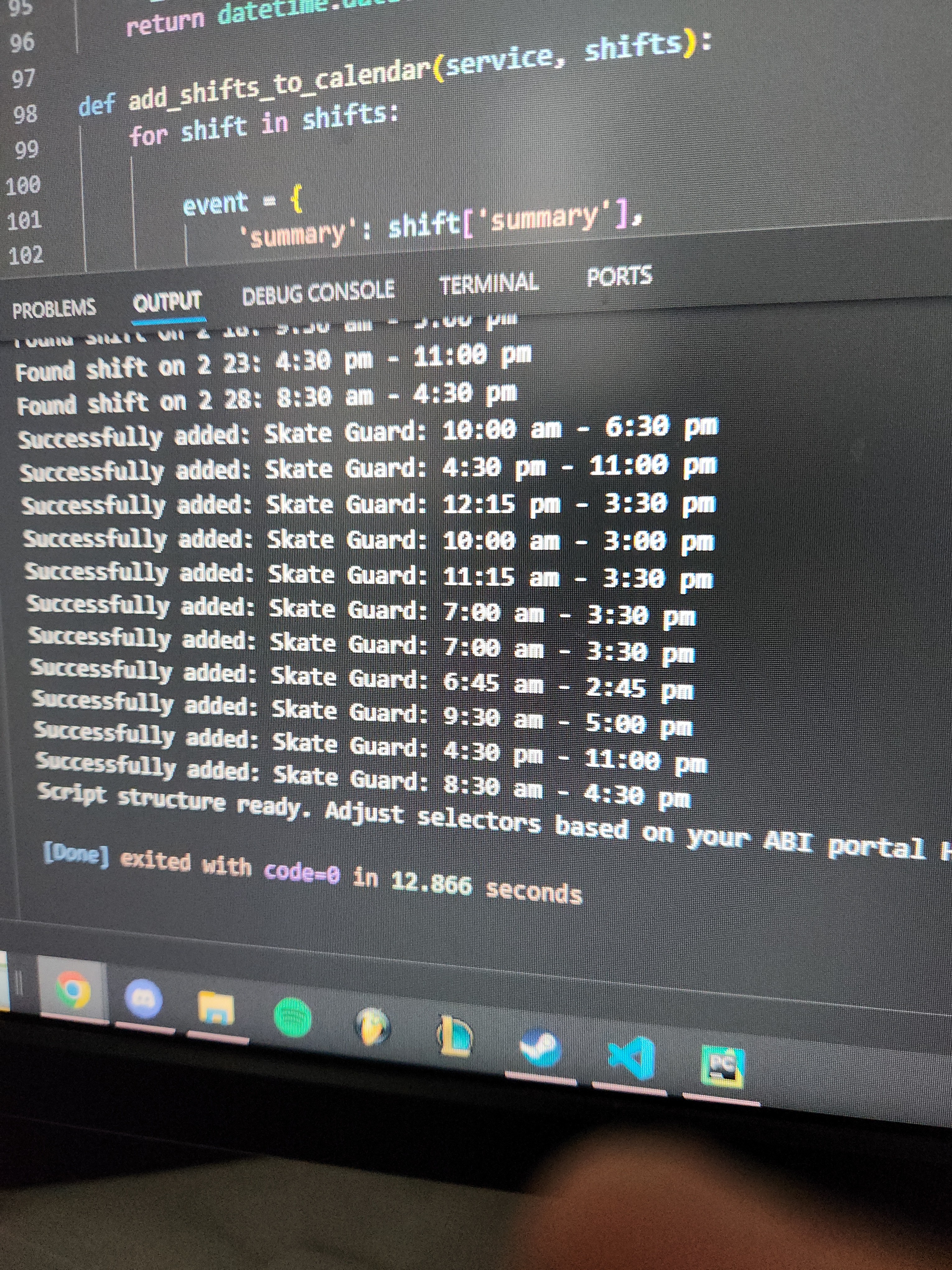 Then, a FastAPI service was developed to process sync requests. In order to support multiple users simultaneously, I implemented Server-Sent Events (SSE) to stream real-time status updates (e.g., "Logging in...", "Shifts Found...") back to the client.